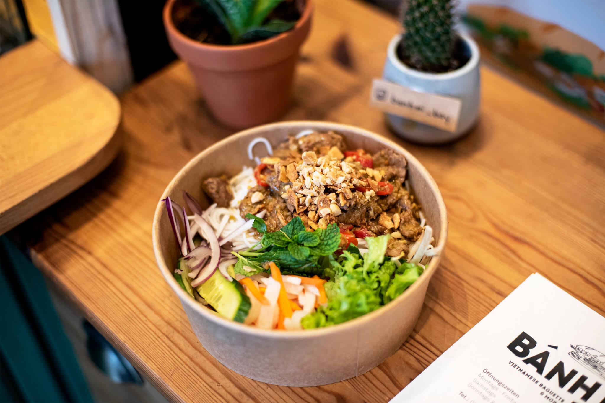Als Cuc Nghuyen das Angebot für den Laden an der Wiedenhofstraße entdeckt, ist sie sofort Feuer und Flamme. Auf knapp 20 Quadratmetern verwirklicht sich die Krefelderin Ende 2019 ihren Traum von einem vietnamesischen Imbiss. Das Geschäft läuft sehr gut an – nicht zuletzt auch wegen der freundlichen Inhaberin, die für jeden Kunden ein Lächeln hat. Dann kam, nachdem der kleine Imbiss nicht mal ein halbes Jahr geöffnet hatte, Corona. Und damit einhergehend die Angst, dass das Lokal die Pandemie nicht überstehen könnte. Doch es kommt anders, wie Tochter und Mutter tief berührt berichten: „Als wir wieder öffnen durften, gab es einen großen Ansturm. Die Krefelder unterstützen uns sehr und helfen uns, das Banh Mi Bay offen zu halten“. Mit Sicherheit liegt das an dem leckeren vietnamesischen Streetfood, das Nghuyen anbietet. Aber eben auch an der ruhigen Freundlichkeit, mit der sie jeden Kunden empfängt und der spürbaren Liebe zu den Gerichten auf ihrer sorgsam zusammengestellten kleinen Speisekarte.