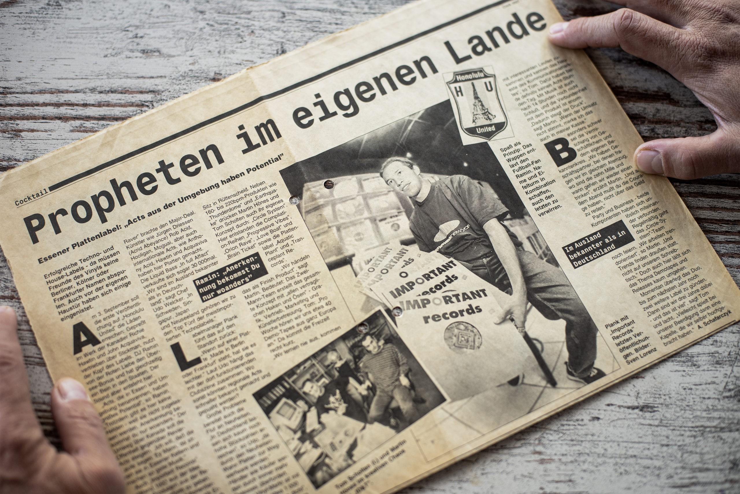 Carsten Plank, circa 21 Jahre alt, grinst in die Kamera. Auf seinem weißen Langarm-Shirt prangt unter den Worten „Acrid Abeyance“ ein großer roter Smiley. Dazu eine kurze, bunt gestreifte Hose, dicke Socken und Käppi. Es ist 1993, und der fröhliche junge Krefelder steht am Anfang seiner Karriere als DJ. „Das war meine Zeit damals. Da bin ich immer so rumgelaufen. Acrid Abeyance war ein Pseudonym von mir und meinem damaligen Studio-Partner. Die DJs hatten damals noch nicht so eine Popularität wie heute. Du konntest dich nur hervorheben, wenn du einen Namen hattest, den sich die Leute merken konnten“, sagt Carsten amüsiert beim Blick auf das alte Analogfoto, das inmitten eines kleinen Stapels alter Bilder und Zeitungsausschnitte auf dem Esszimmertisch in seinem ländlich gelegenen Elternhaus liegt. Es ist wenige Tage nach Weihnachten 2020.
