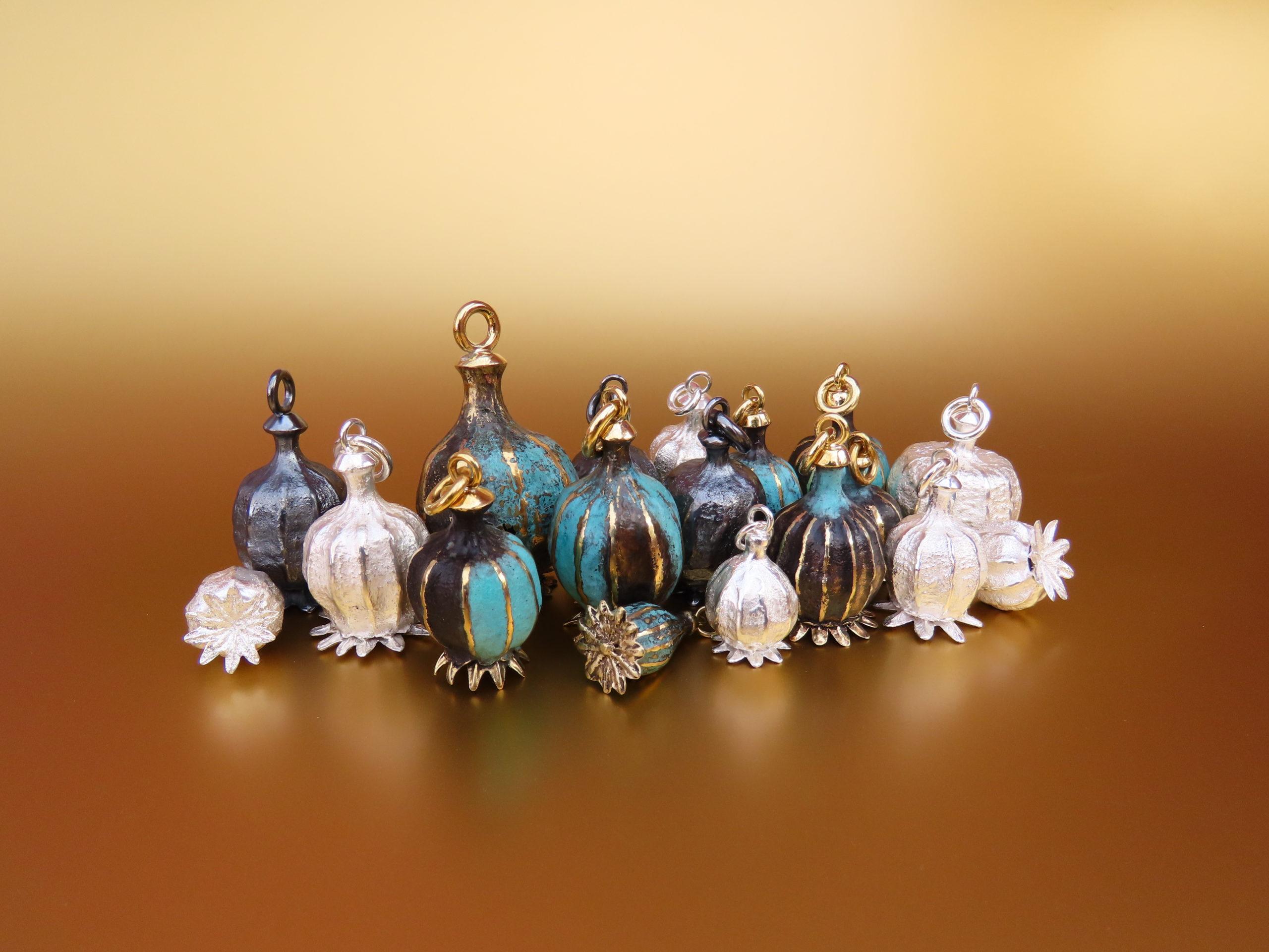 Mit dabei ist auch Schmuckdesignerin Simone Drechsel, deren Arbeiten von der Fülle und Formenwelt der Natur inspiriert sind. „Mein Garten ist meine Energiequelle für Lebensqualität und Ort der Inspiration“, beschreibt sie mit spürbarem Optimismus ihre Haltung. „Seit 2009 fertige ich aus Naturvorlagen meinen Schmuck. Nach dem Prozess der Umwandlung zu Schmuckobjekten verändern die Vorlagen aus der Pflanzenwelt ihre Aussagekraft, und ihre Schönheit wird unvergänglich. Mohn gehört zu meinen Lieblingspflanzen. Da wollte ich von Anfang an eine Alleinstellung mit Wiedererkennung schaffen. Und so entstanden meine ersten Mohnjuwelen.“