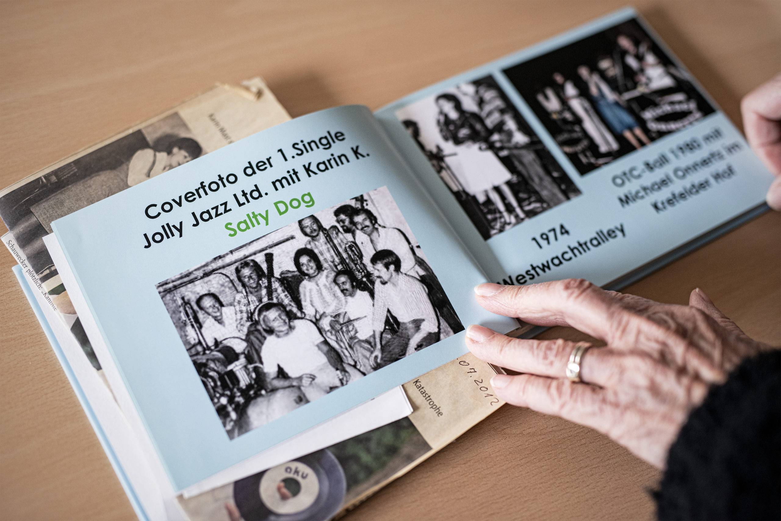 Wenn ihre Eltern meinten, dass ihre Tochter nun zur braven, strebsamen jungen Frau würde, hatten sie sich gewaltig getäuscht. Karin steckt voller Lebenslust, unternimmt viel, geht aus. Die Kneipen der Düsseldorfer Altstadt werden ihr ,zweites Zuhause‘. Auf dem Weg zu einer Party trifft Karin, die damals noch Kreusch mit Nachnamen heißt, ihren zukünftigen Musikerkollegen Freddy Schauwecker, der eine Sängerin für seine Dixieland-Band ,Collegium Jazzicum‘ sucht. Kurz entschlossen lädt die Krefelderin die Jungs zu sich nach Hause ein und singt ihnen vor. Gebongt! Die Sängerinnenkarriere von ,Karin K‘ beginnt.