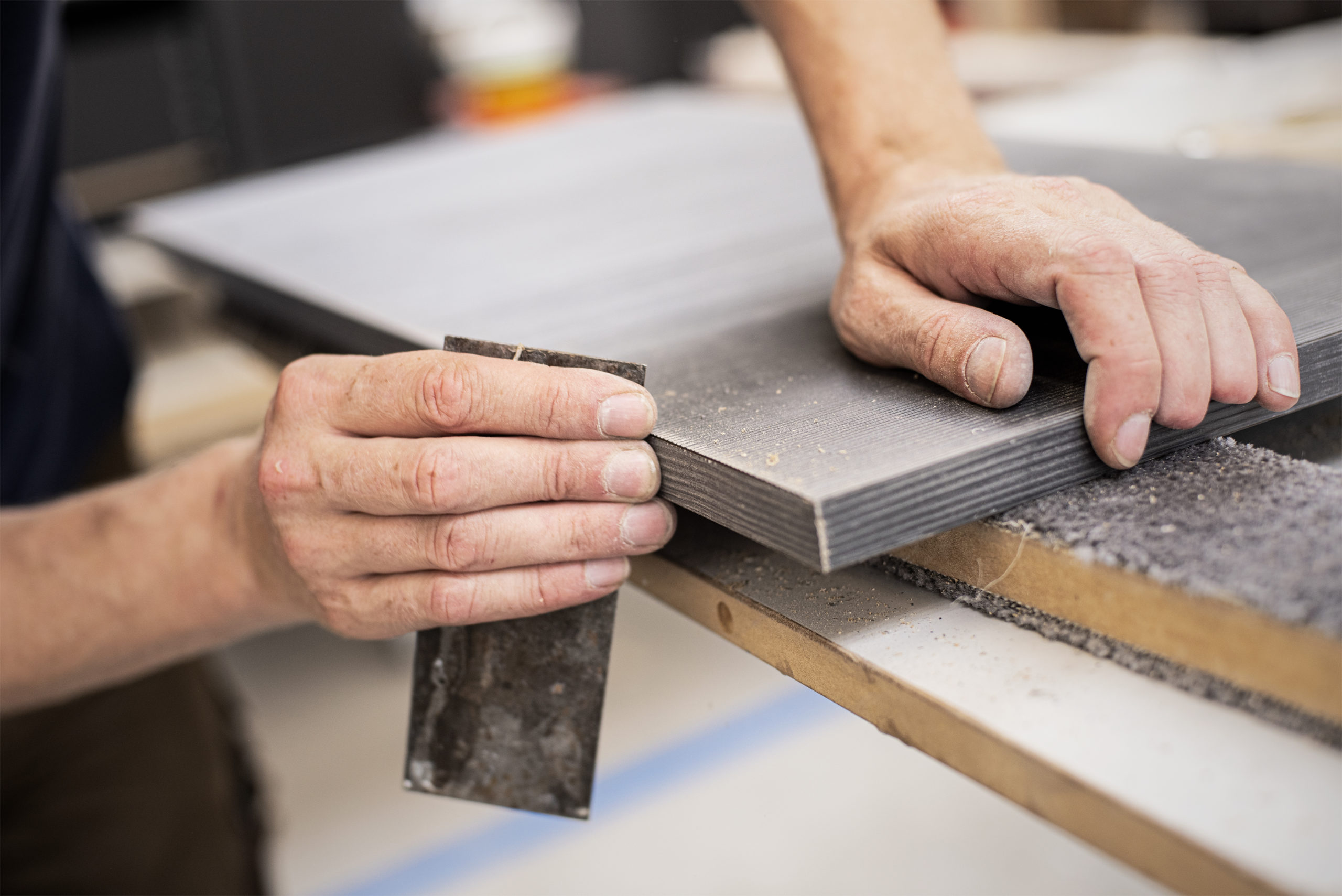 Auch, was den Werkstoff selbst betrifft, lässt sich klimaschonend arbeiten: Denn tropisch muss es in Sachen Holz nicht unbedingt werden: Früher von vielen als altmodisch verschrien – siehe Omas Buffetschrank – erfreuen sich auch regionale Hölzer wieder wachsender Beliebtheit. „Das Tolle am Holz ist ja, dass es ein nachwachsender Rohstoff ist. Wenn ich meine Kunden berate, empfehle ich gerne Hölzer aus Deutschland, das ist natürlich viel nachhaltiger. Meine Materialien beziehe ich von Krefelder Händlern“, erklärt Max Muctar. Dank seines engen regionalen und überregionalen Kooperationsnetzwerks kann das mittelständische Unternehmen schnelle Abläufe gewährleisten und außergewöhnliche Wünsche verwirklichen. Neben Schreinereiaufträgen übernimmt die Hülser Firma auch Glas-, Stein-, Polster- und Metallarbeiten. Gemeinsam mit renommierten Designern und Architekten konnte LEGNO zudem bereits mehrere LEED-zertifizierte Projekte umsetzen, die sich durch besonders ressourcensparende, energieeffiziente Abläufe auszeichnen.