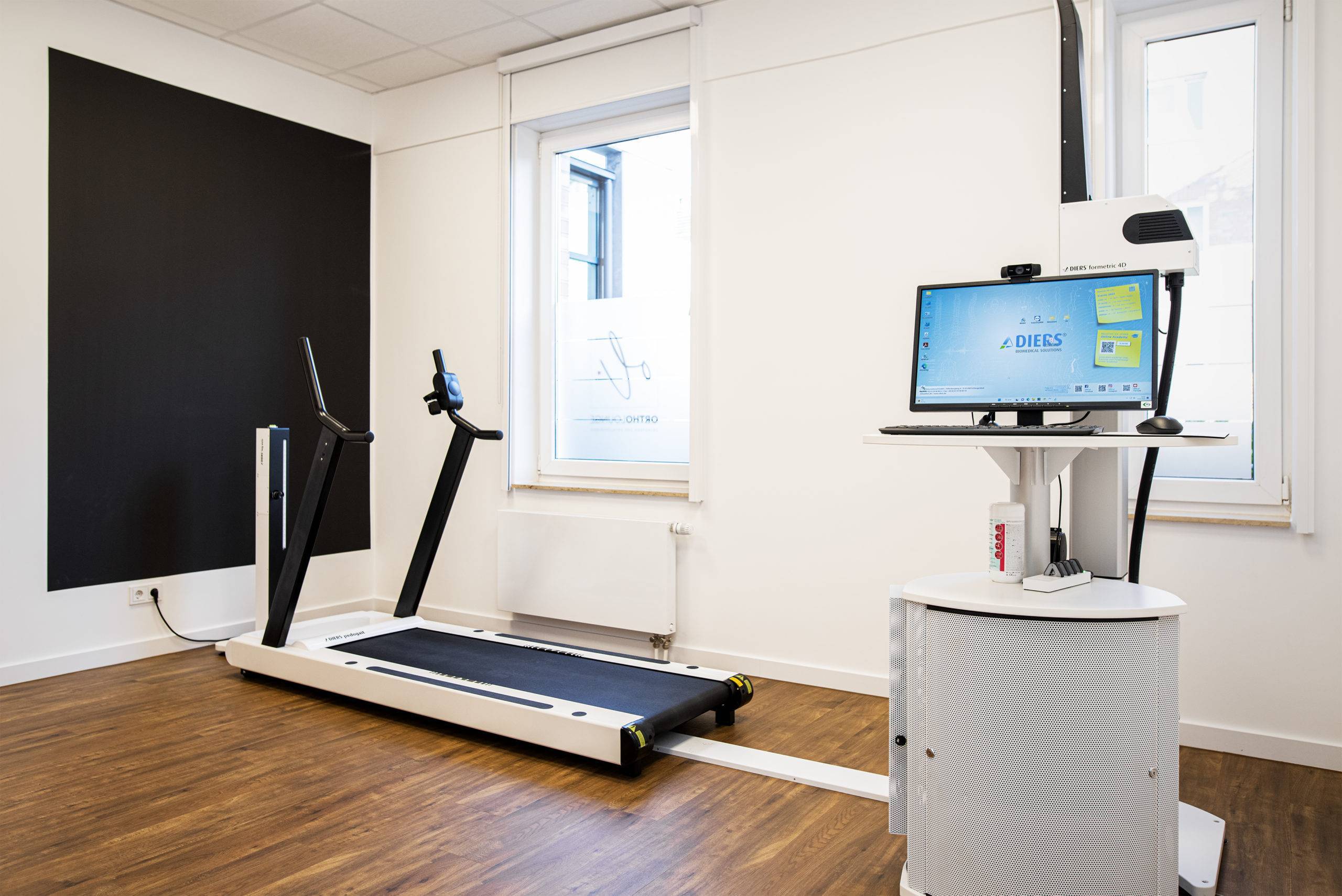 Hilfe bietet nicht nur, aber auch konkret in einem solchen Fall, die dynamische Wirbelsäulenvermessung mit einem praxiseigenen, hochfunktionalen Gerät aus dem Hause des Marktführers DIERS. „Dank modernster Kameratechnik und exzellenter Software bietet der DIERS 4D motion® Lab erstmals die Möglichkeit, die Komplexität des Bewegungsapparates, an dem von der Halswirbelsäule bis zur Großzehe zahlreiche Elemente beteiligt sind, in einer dynamischen Analyse darzustellen“, erklärt der Krefelder Mediziner. Letztlich motiviert, dieses Angebot in sein Portfolio aufzunehmen, habe ihn allerdings die Tatsache, dass mit der Vermessung nur der Beginn eines gemeinsamen Weges in Richtung höherer Lebensqualität markiert werde: „Alle Messergebnisse – darunter auch eine in das Laufband integrierte Messplatte, die einen virtuellen Abdruck der Fußbelastung formt – münden nicht allein in hochwertigen Einlagen oder anderen Verordnungen, sondern in einem konkreten, persönlichen Behandlungsplan“, betont Dr. Sinan Yücel. Dieser werde von zwei Seiten aus für den weiteren Fortschritt benutzt: „Die individuellen Trainingsmaßnahmen können unsere Patienten und Kunden in einer eigenen App der Firma DIERS abrufen und zu Hause umsetzen. Darin liegt auch der Charme der Maßnahme, dass man nicht noch irgendwo hinfahren muss, sondern im gewohnten Umfeld ohne weitere Kosten große Effekte erzielen kann.“ Eine eigens zu diesem Zwecke in der ORTHOLOUNGE angestellte Sporttherapeutin betreut unter seiner Supervision die Umsetzung, deren Erfolge nach drei Monaten mithilfe einer erneuten Vermessung festgestellt werden und gegebenenfalls zu einer Überarbeitung des Plans führen.