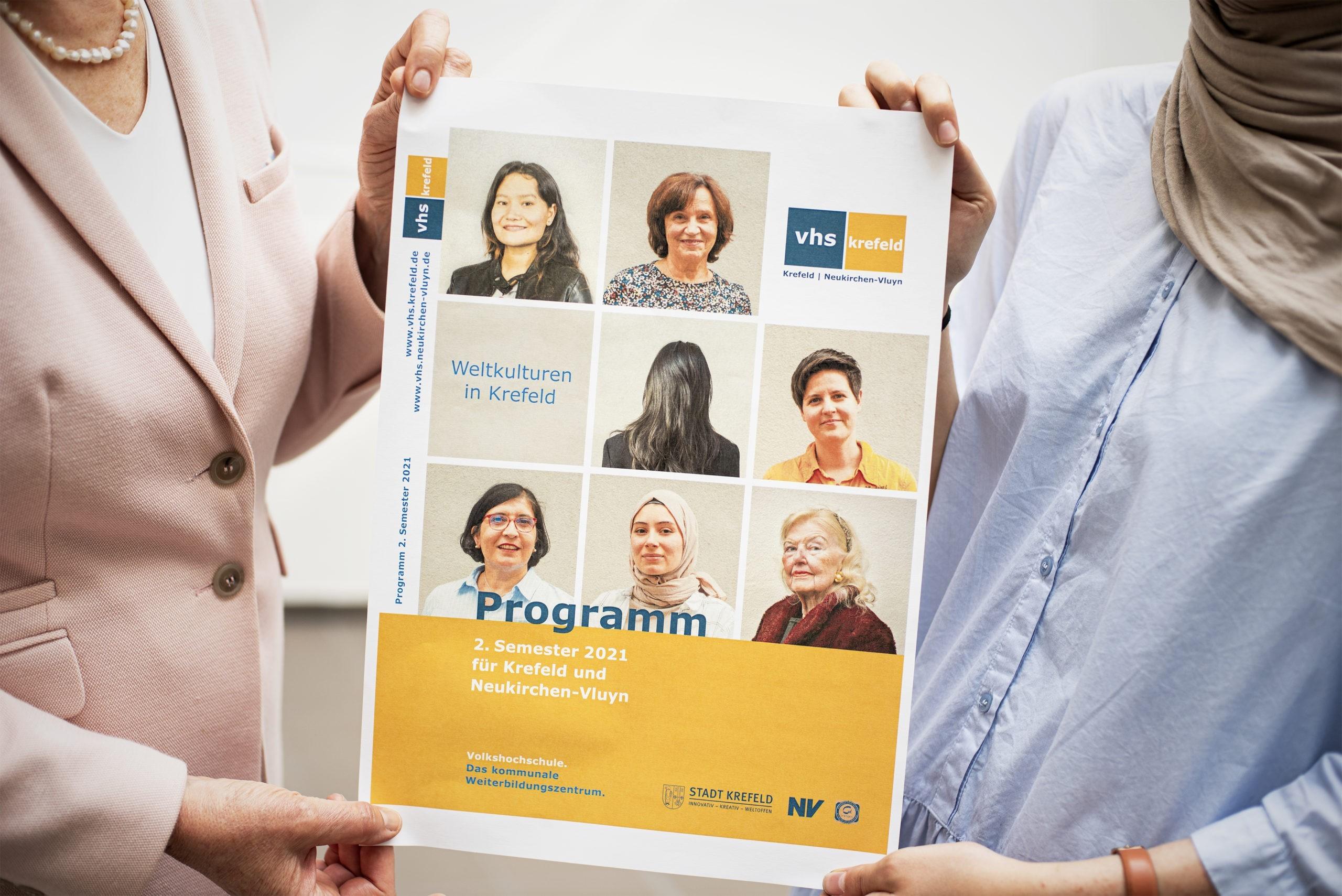 Um die Idee zum Projekt nachvollziehen zu können, bedarf es eines großen Schritts zurück. Im März 2019 war Professor Ourghi mit seinem Buch „Ihr müsst kein Kopftuch tragen“ in der VHS Krefeld zu Besuch. Der Islamwissenschaftler stellt die These auf, dass das Kopftuch in konservativen muslimischen Kreisen als politisches Instrument eingesetzt werde, um die Rechte von Frauen zu beschneiden. Es entstand eine rege Diskussion; einige Tage später wandte sich der Vorstand der Türkischen Union an Dr. Inge Röhnelt. Taibe Akdenzi, stellvertretende Vorsitzende der Türkischen Union, lud die VHS-Leiterin ein, selbst einmal mit muslimischen Frauen über die Bedeutung des Kopftuchs zu sprechen. Bei einem „Mädelstreffen“ in der Moschee, zu dem Inge Röhnelt auch Gleichstellungsbeauftragte Heike Hinsen begleitete, kamen die Frauen ins Gespräch.