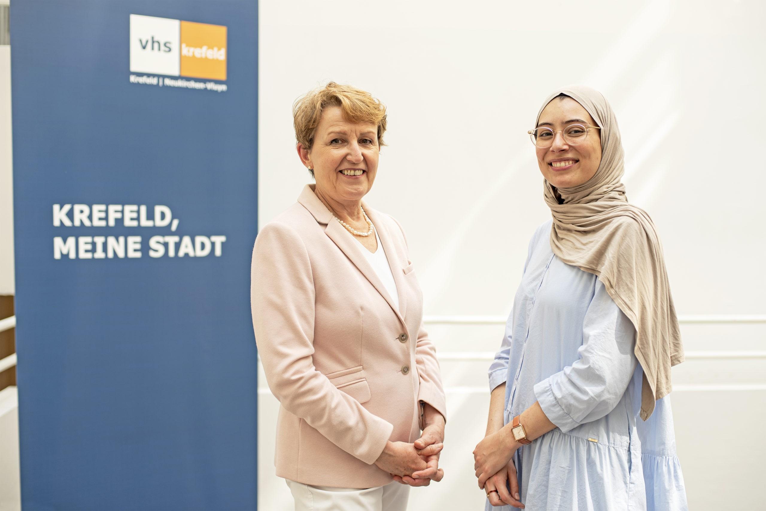 Es sind Biografien zweier ganz unterschiedlicher Frauen und doch erzählen beide eine ähnliche Geschichte und sind wie durch ein unsichtbares Band miteinander verwoben. Dieses Band macht die neue Ausstellung der VHS Krefeld in Kooperation mit der Gleichstellungsstelle und dem Fachbereich Migration und Integration jetzt sichtbar. Unter dem Slogan „Krefelder Mütter und Töchter“ haben sich im Rahmen einer internationalen Kulturwerkstatt 14 Frauen aus VHS-Integrationskursen ein Jahr lang kennengelernt und miteinander gearbeitet. Dabei sind Audiomitschnitte und Tafeln entstanden, mit denen jede Frau ihre eigene Biografie erzählt. Diese Tafeln stellen die Gemeinsamkeiten von Frauen, die aus unterschiedlichsten Kulturkreisen stammen und zu unterschiedlichen Zeiten geboren wurden, dar. Sie befassen sich aber auch mit Spannungsfeldern, mit politischen Entwicklungen und der Stellung der Frau weltweit. Die Rolle der Mutter und Großmutter rückt dabei in den Vordergrund.
