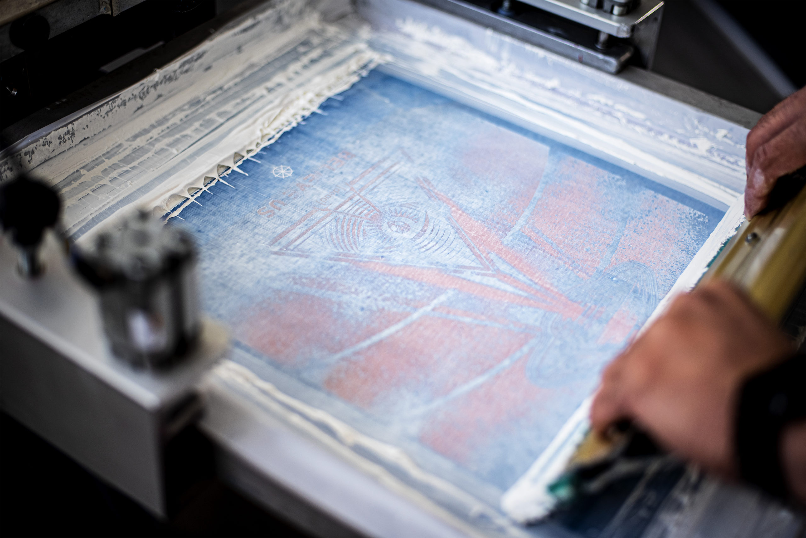 Die schlechte Qualität aber ärgert ihn zunehmend. „Ein Kumpel schlug vor, dass wir das einfach selbst machen könnten“, erinnert er sich. Mit einer selbstgebastelten Maschine aus einem umfunktionierten Rohr und ein paar Klemmen entsteht der Startschuss zu „Illhill“ und „Shirtfab“, dem heutigen täglichen Brot des Designers.